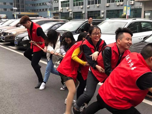 當(dāng)比賽的哨聲一響起,全體參賽人員使出全身的力量投入到拔河比賽中,現(xiàn)場(chǎng)的吶喊聲、加油聲此起彼伏。