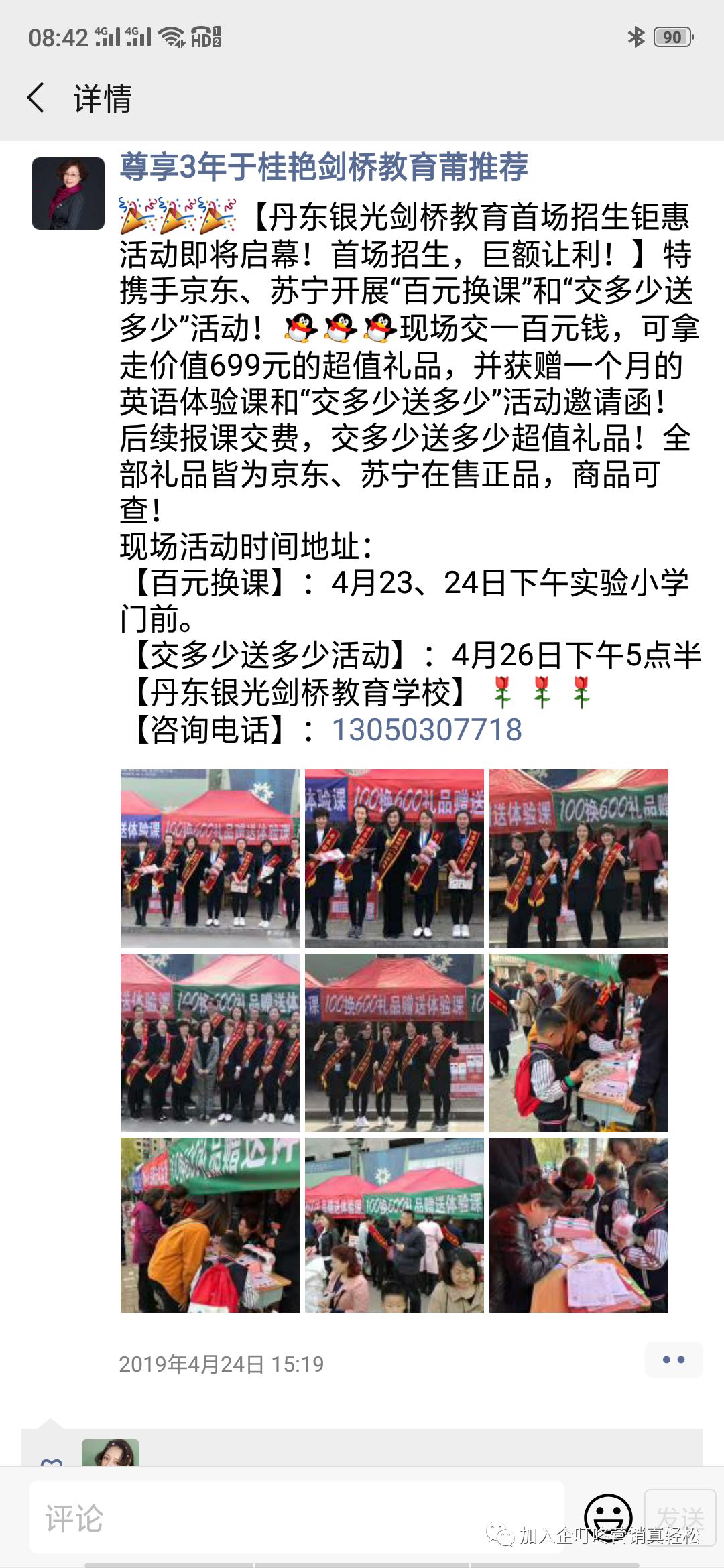 23、24日兩天下午的活動主題是——100元換600禮品贈送400元的體驗課。僅僅兩個下午的時間,成功引流120多人,同時邀請這120多位家長參加26日晚5點30分的《特優(yōu)贈課》活動,即“續(xù)課繳費,交多少送多少”!