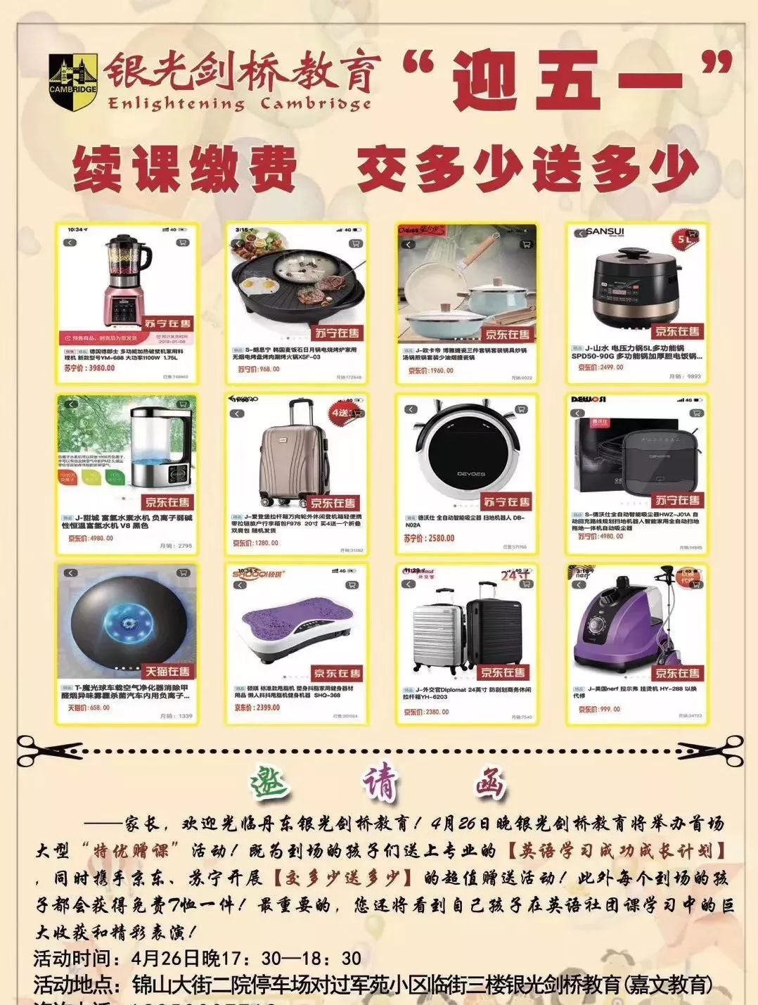 通過活動內(nèi)容看得出,此次銀光劍橋教育采用的是贈品營銷的方式。