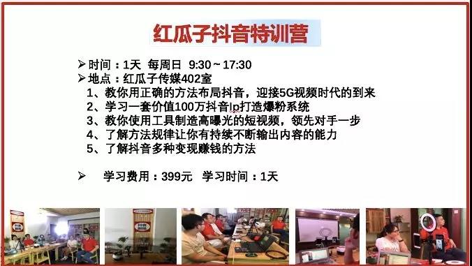 5G時(shí)代來(lái)臨,信息以短視頻形式來(lái)傳播,抖音是全球短視頻流量最大的平臺(tái),沃爾瑪一條抖音增加2000萬(wàn)收入,一條抖音為華為手機(jī)單店增加650萬(wàn)收入,怎樣用好抖音,對(duì)我們個(gè)人和公司都非常重要,紅瓜子抖音研究院每天都有組織《抖音劇場(chǎng)》節(jié)目和每周日都舉行《抖音特訓(xùn)營(yíng)》培訓(xùn),歡迎大家積極參加