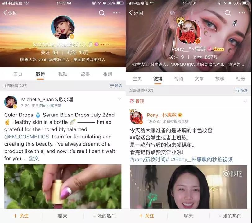 目前已有近900萬(wàn)粉絲的韓國(guó)美妝博主「Pony__樸惠敏」在2016年入駐微博,由南極電商代理,相較之下,其Instagram和YouTube的粉絲分別為660萬(wàn)和527萬(wàn),據(jù)了解,Pony的自有品牌Pony Effect在淘寶開店當(dāng)天銷售額過(guò)千萬(wàn)。