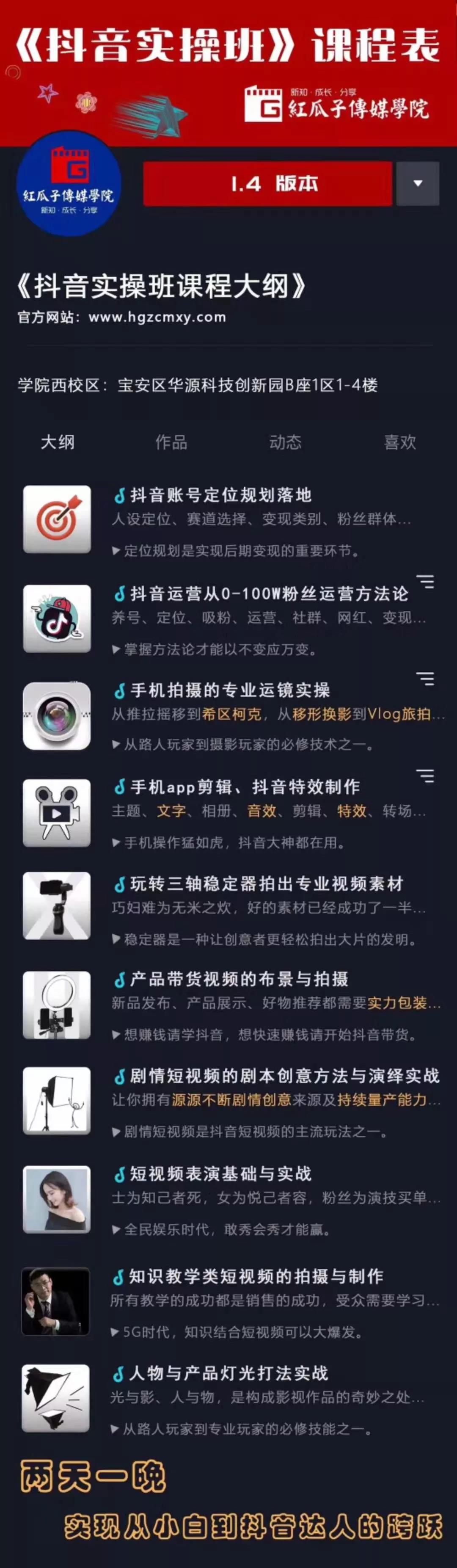 兩天一晚的培訓(xùn),讓你實現(xiàn)從小白到抖音達(dá)人的跨躍,本次培訓(xùn)的具體內(nèi)容包括以下10點